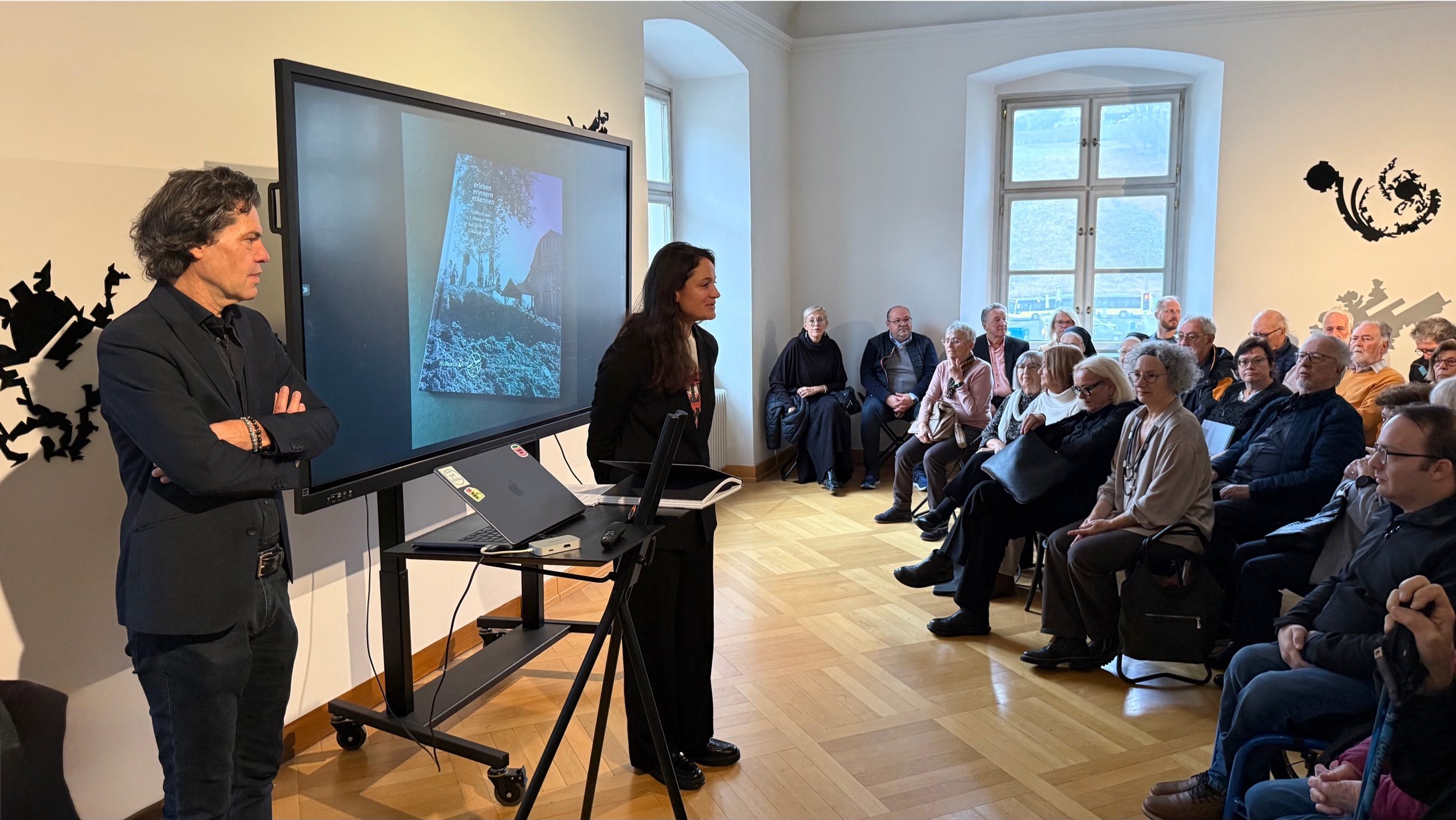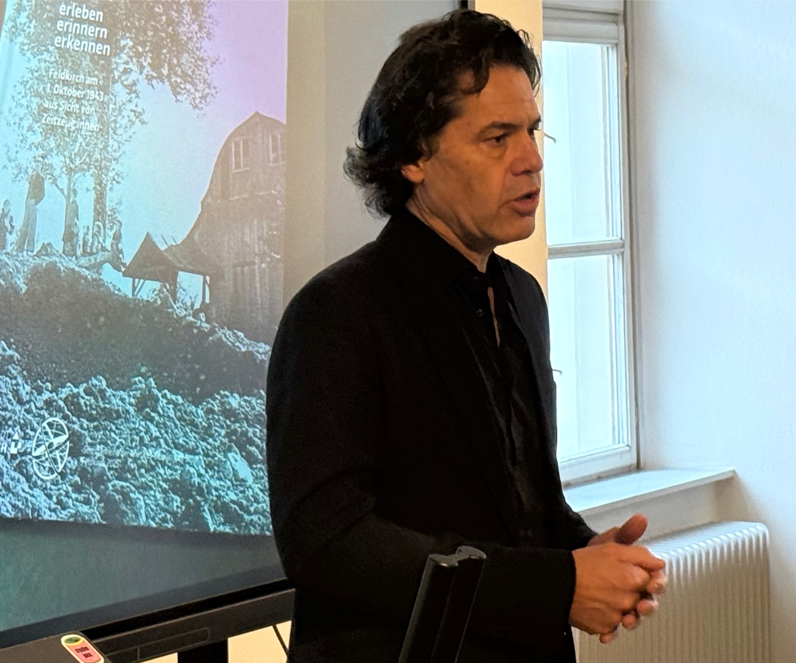 Der Obmann der Rheticus-Gesellschaft, Albert Ruetz, stellte anschließend das neue Buch „Erleben. Erinnern. Erkennen. Feldkirch am 1. Oktober 1943 aus Sicht von Zeitzeug:innen“ vor. Ausgangspunkt war ein Vortrag des Historikers Wolfgang Weber, der bereits vor zwei Jahren den Wunsch äußerte, die traumatischen Kriegserfahrungen Feldkirchs bewusst und öffentlich sichtbar aufzuarbeiten – als wichtigen Beitrag zu einer stabilen demokratischen Erinnerungskultur.