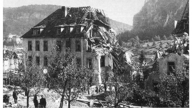 Das Antoniushaus in Tisis nach der Bombardierung am 1. Oktober 1943. Über 170 Menschen starben bei dem Ereignis. (Foto Stadtarchiv FK)