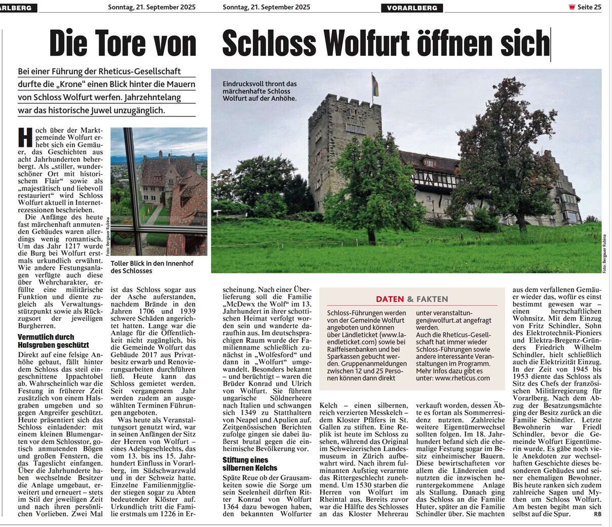 Herzlichen Dank an die Redaktion der KRONE Vorarlberg für die unentgeltliche Zurverfügungstellung!
