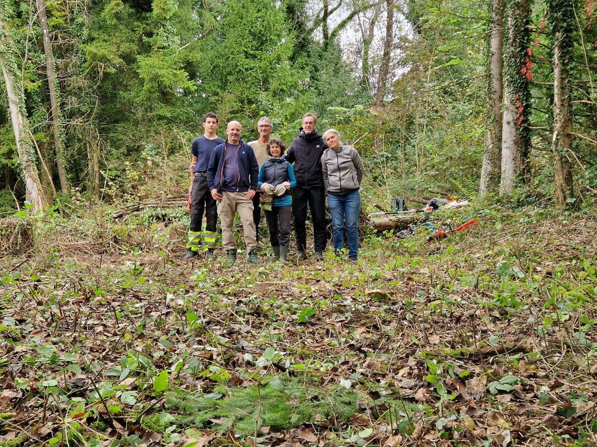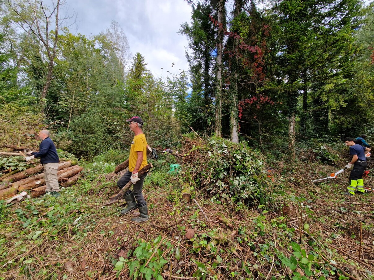 Dann rückten sie mit viel Elan auf einer ehemaligen Wiesenfläche mit einem teilweise verlandeten Tümpel den sich invasiv ausbreitenden Brombeerbüschen zu Leibe. Sie zersägten kreuz und quer liegende alte Baumstämme und schichteten diese nebenan auf – als zusätzlichen Unterschlupf sowie Lebensraum für eine Reihe von Tieren, Pflanzen und Pilzen.
