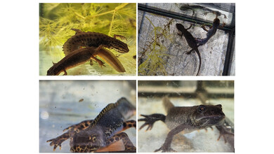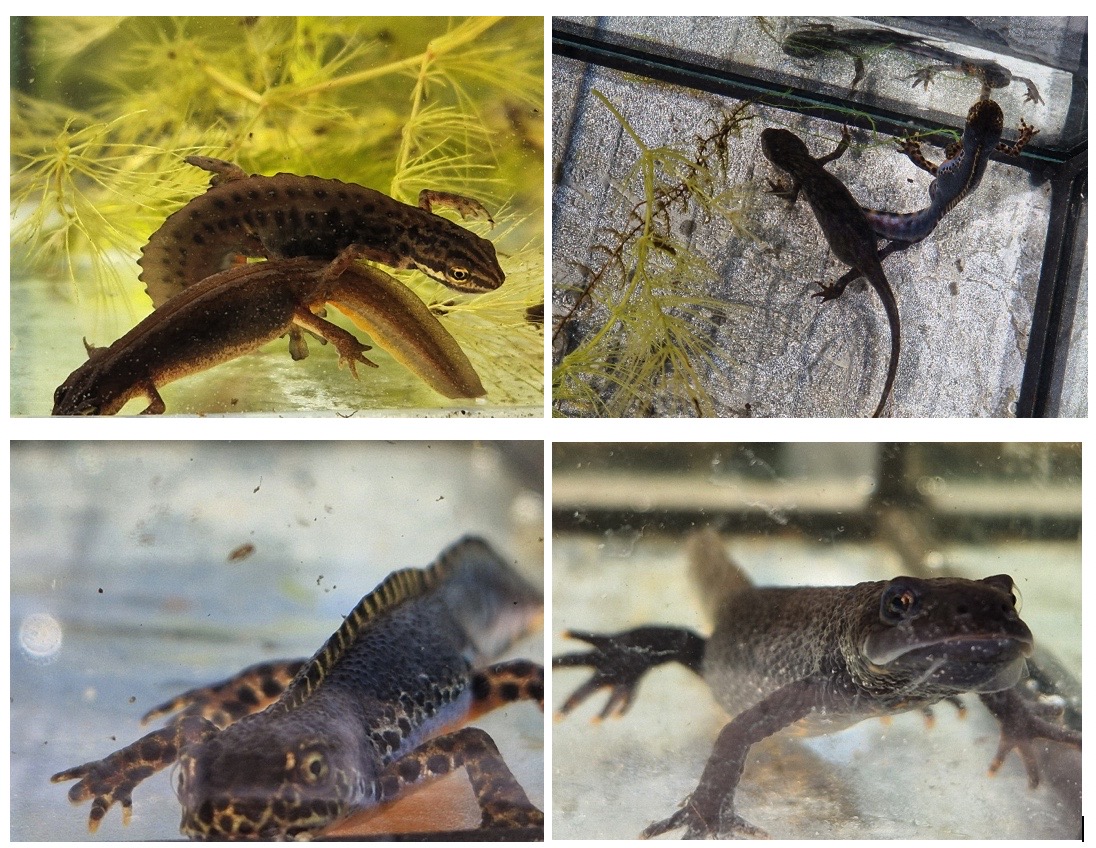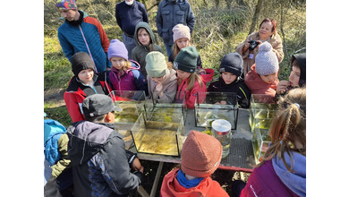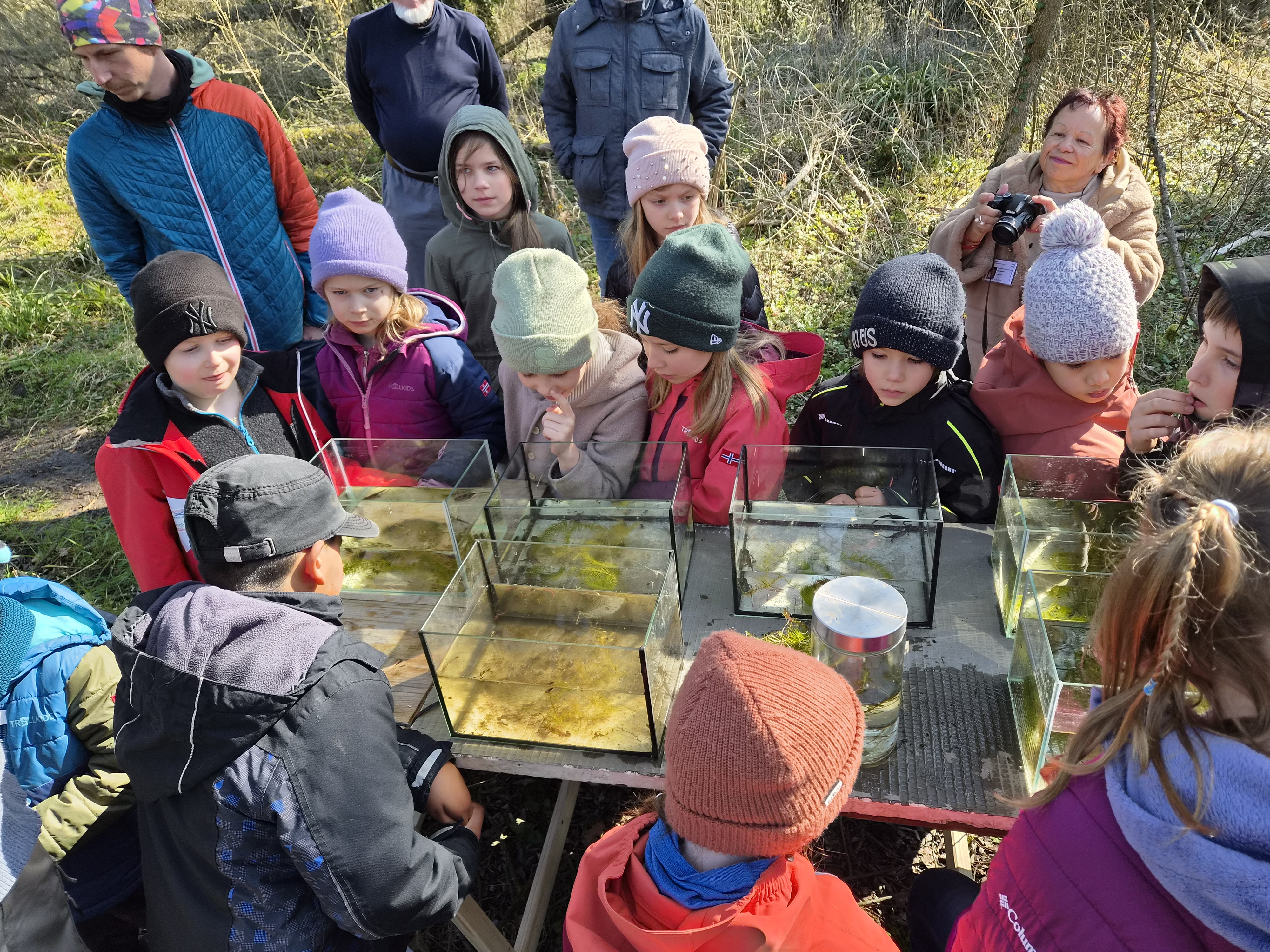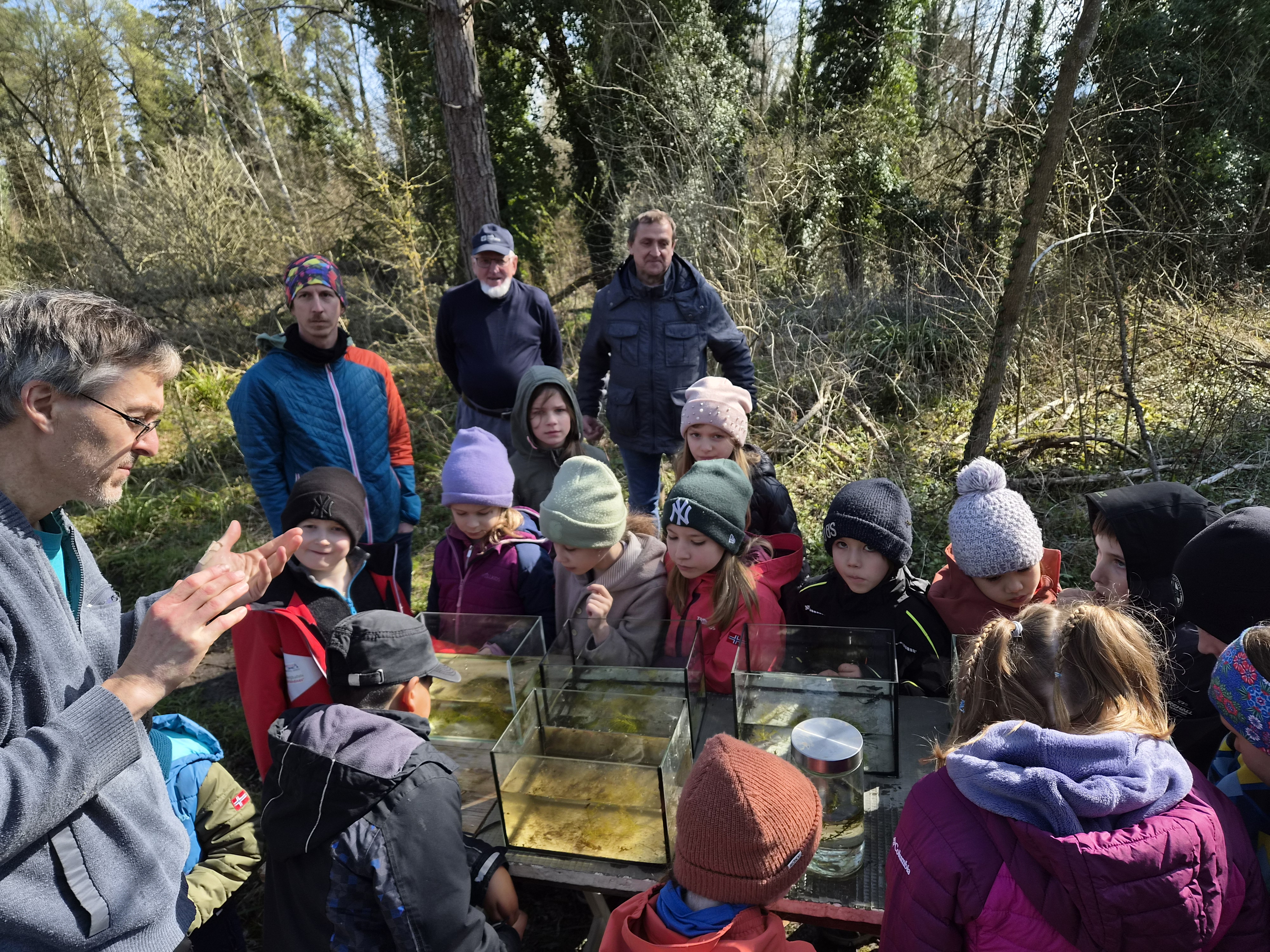 Bestaunen der Molche («Wasserdrachen»), Kaulquappen und Wasserinsekten