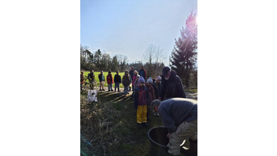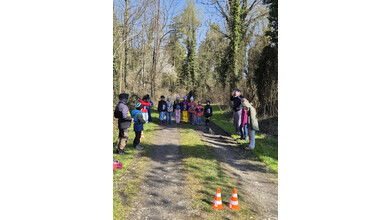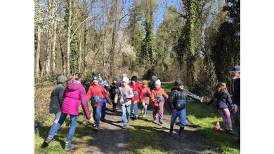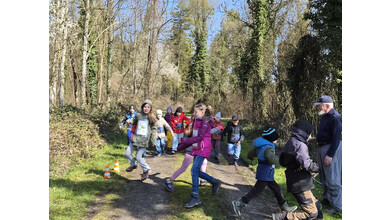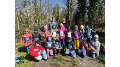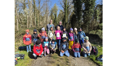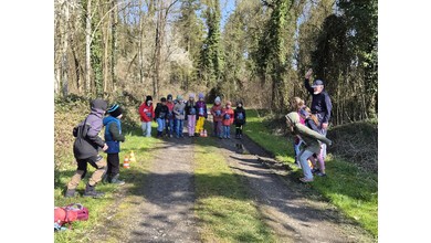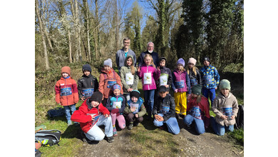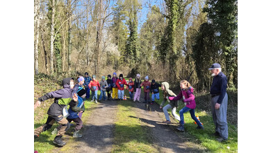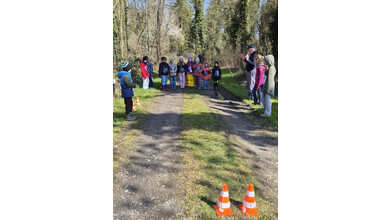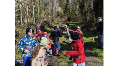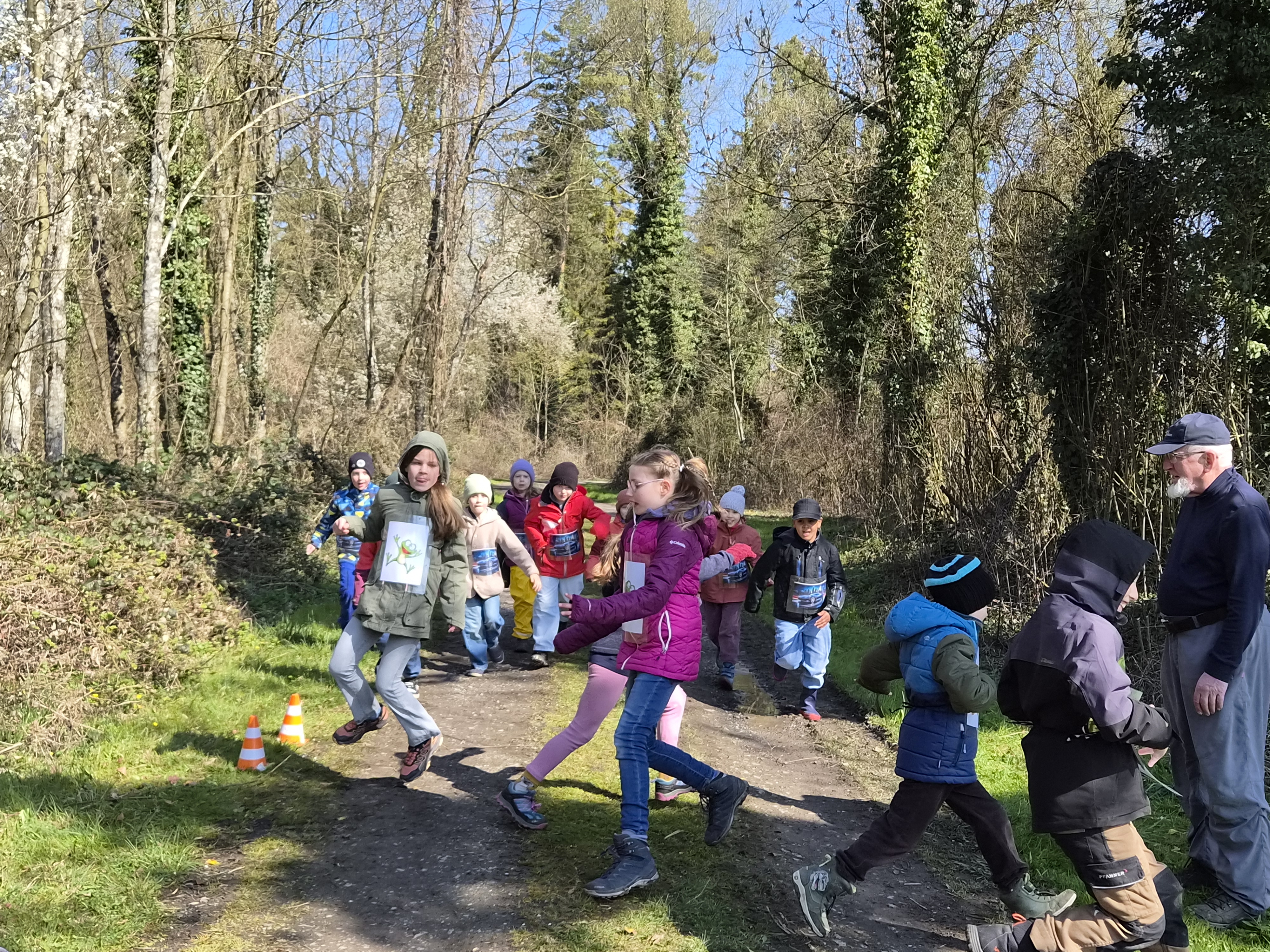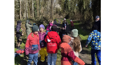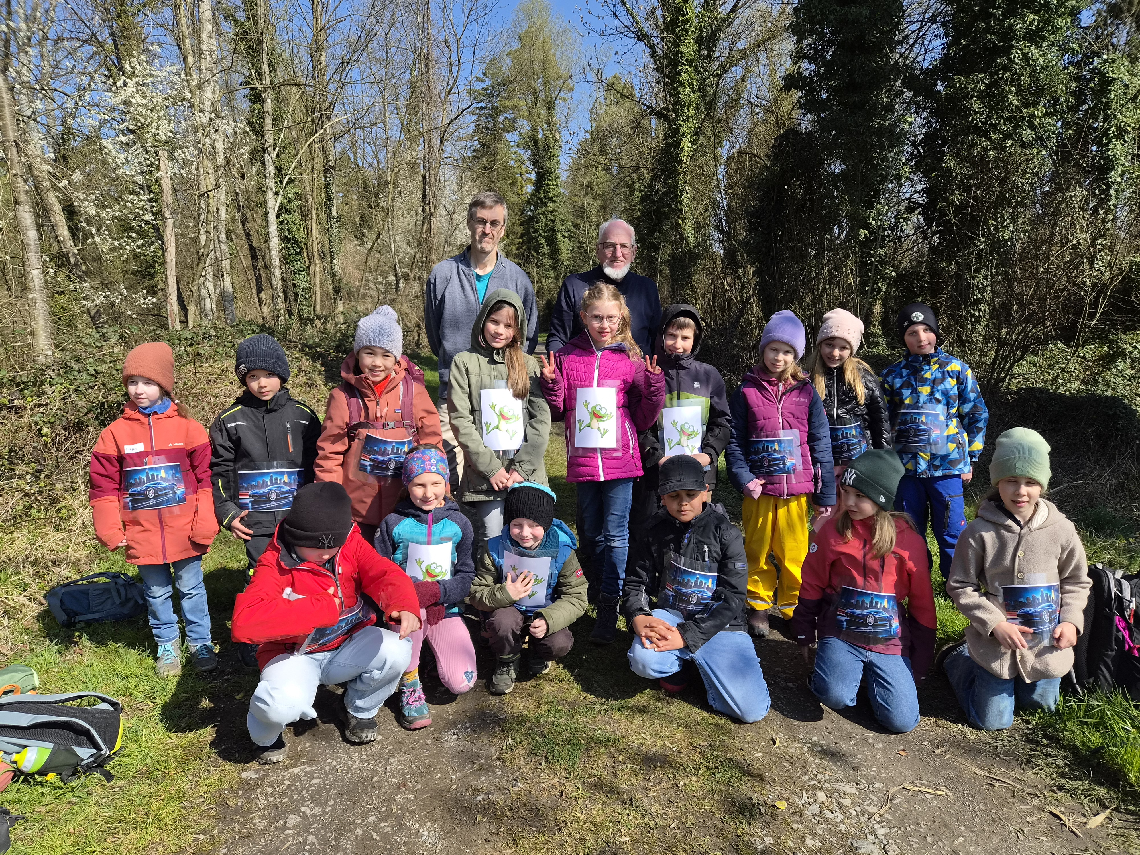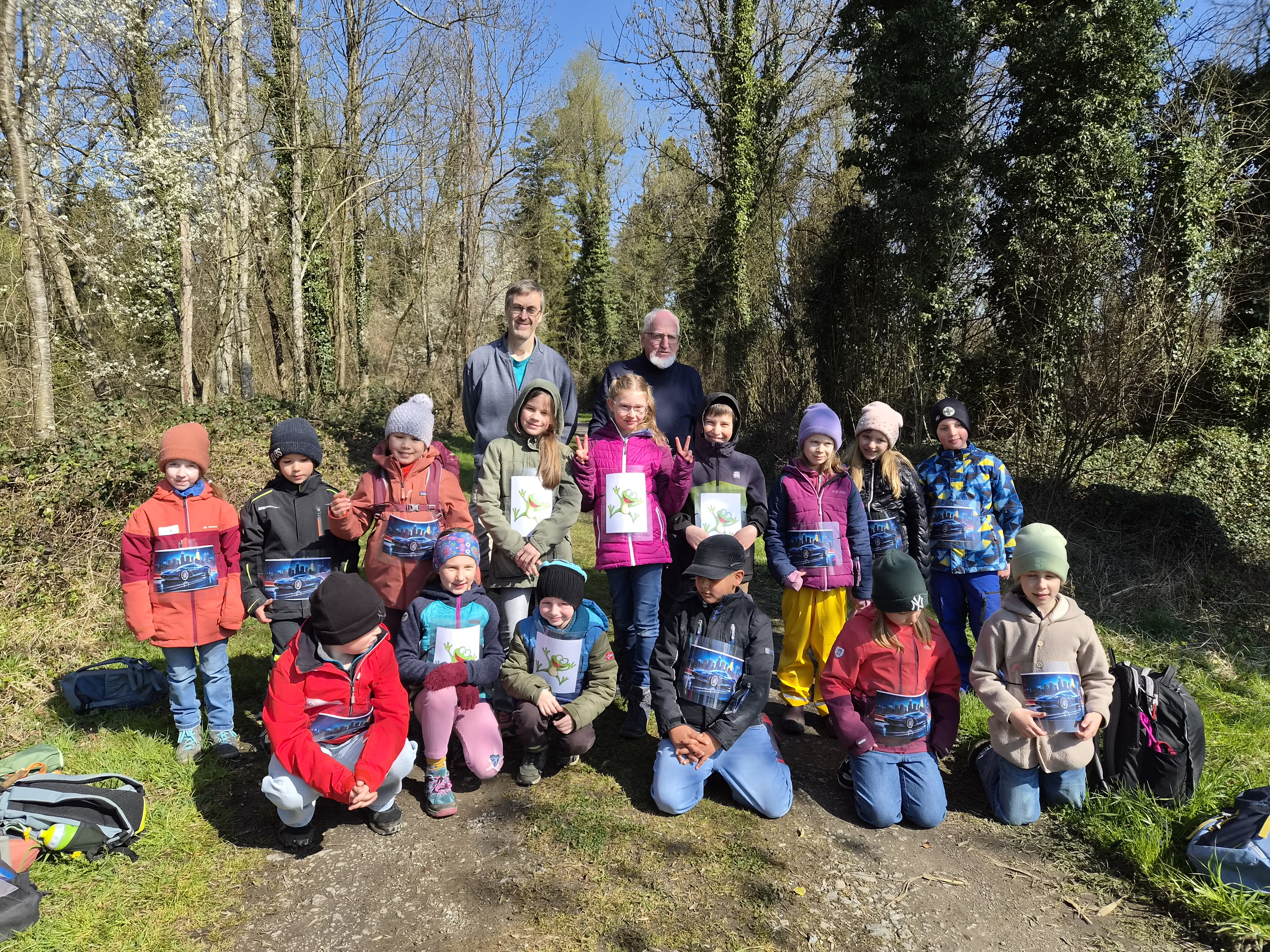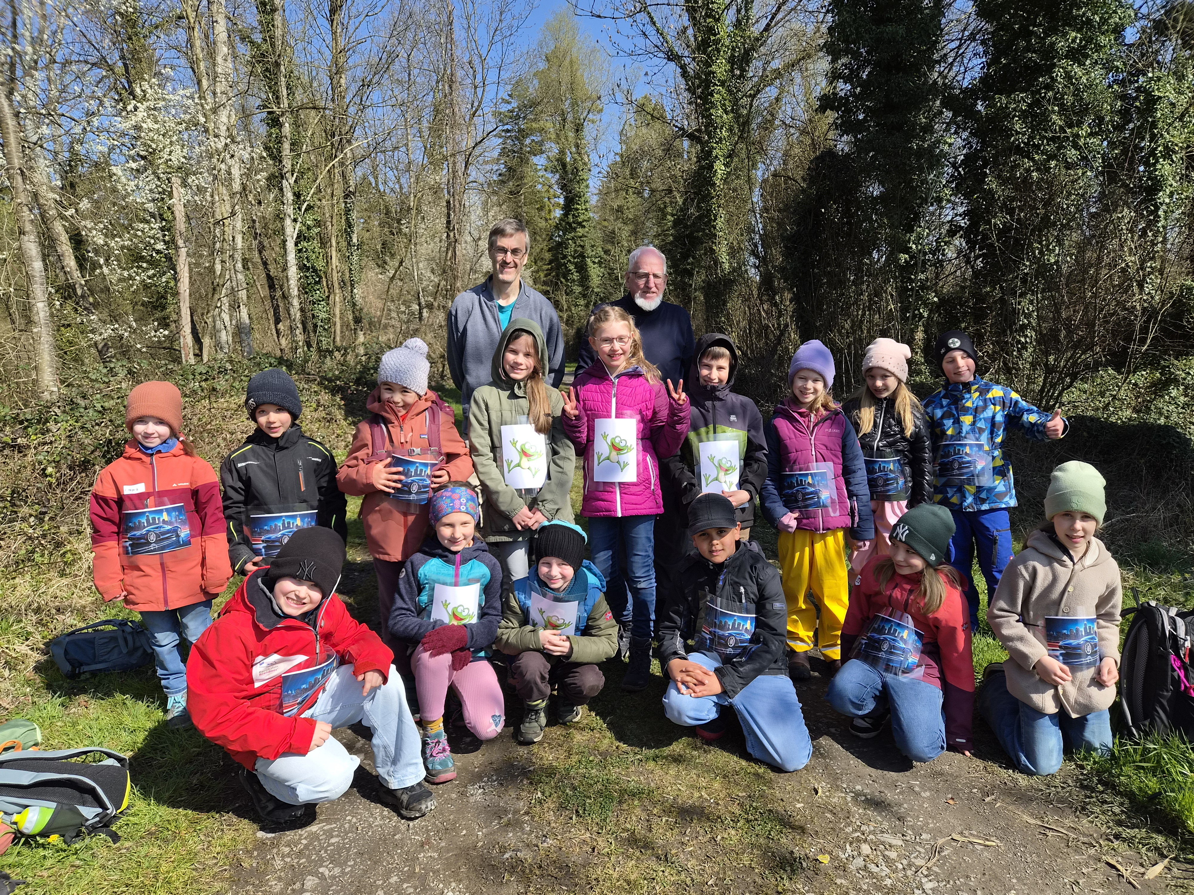 So schnell kann ein Vormittag vorbei sein, wenn es gemeinsam Spannendes zu entdecken gibt. Nach einem gemeinsamen Foto erhielten die Entdeckerinnen eine Bildkarte mit Tieren zum Andenken. Die Kolonne der jungen Leute setzte sich Richtung Startpunkt in Bewegung – dabei auch durch den kleinen Buchenwald, wo die Jungbäume in gleichen Abständen gepflanzt waren.