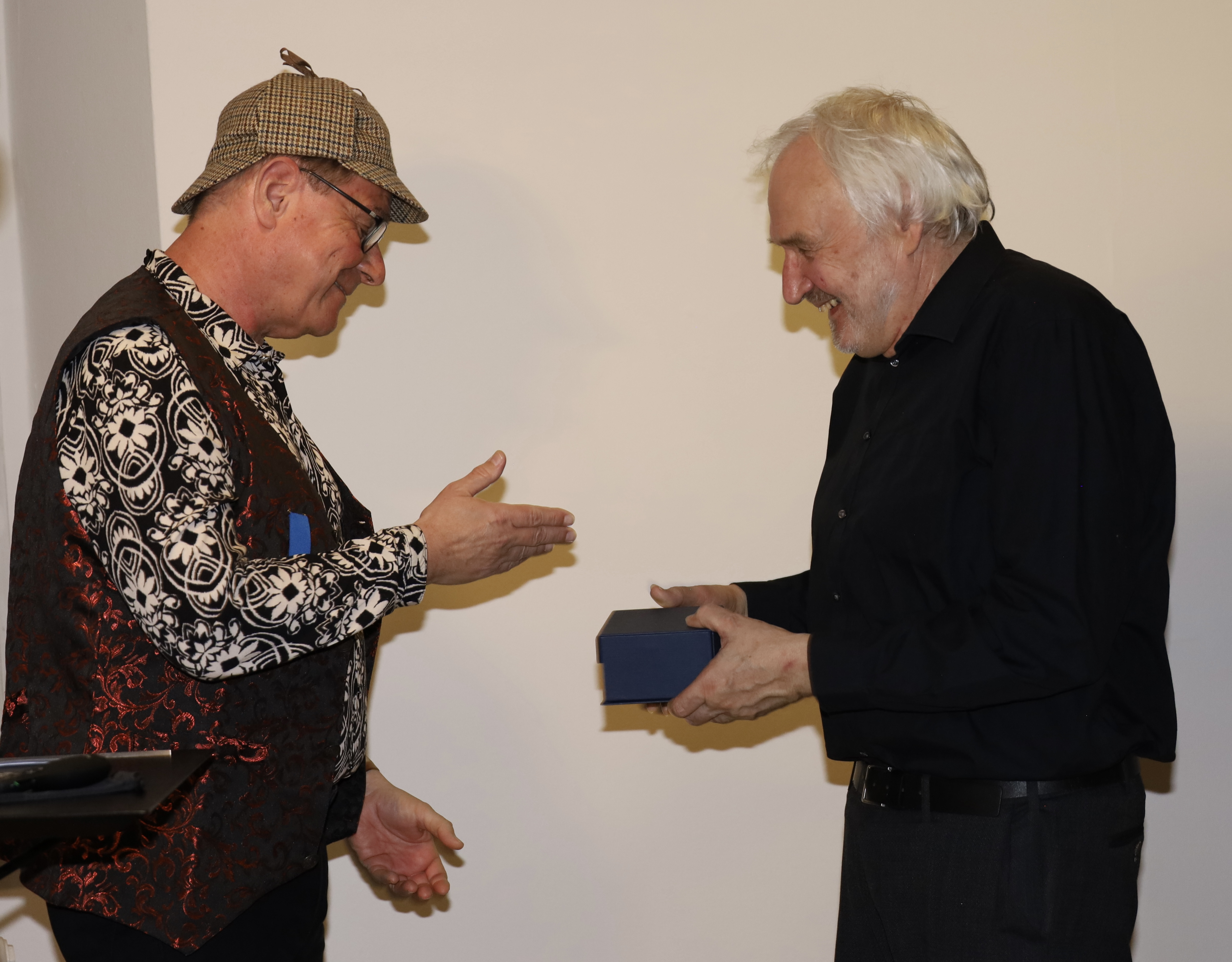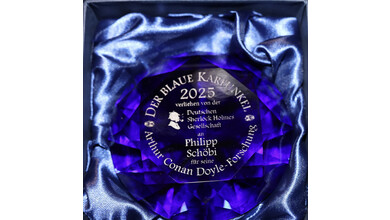 Der „Blaue Karfunkel“ wurde von Thomas Fröhlich, Leiter des österreichischen Stammtisches der Deutschen Sherlock Holmes Gesellschaft, überreicht. Gewürdigt wurde damit die langjährige, fundierte Forschungsarbeit des in Feldkirch lebenden Mathematikers und Autors Philipp Schöbi.